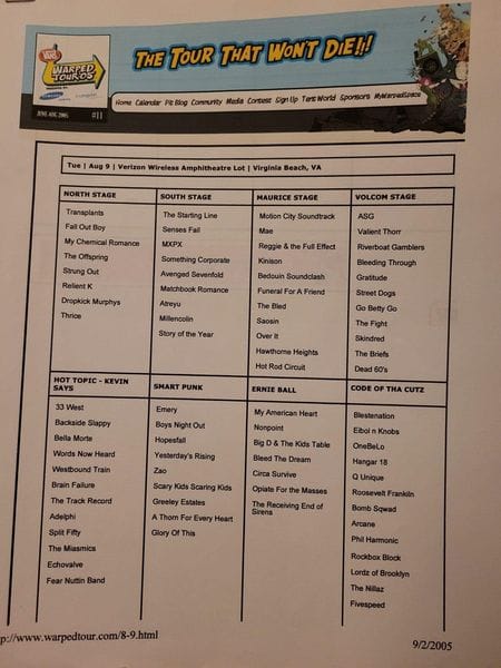 Glory Of This at Warped Tour 2005 and the list of bands set to play
